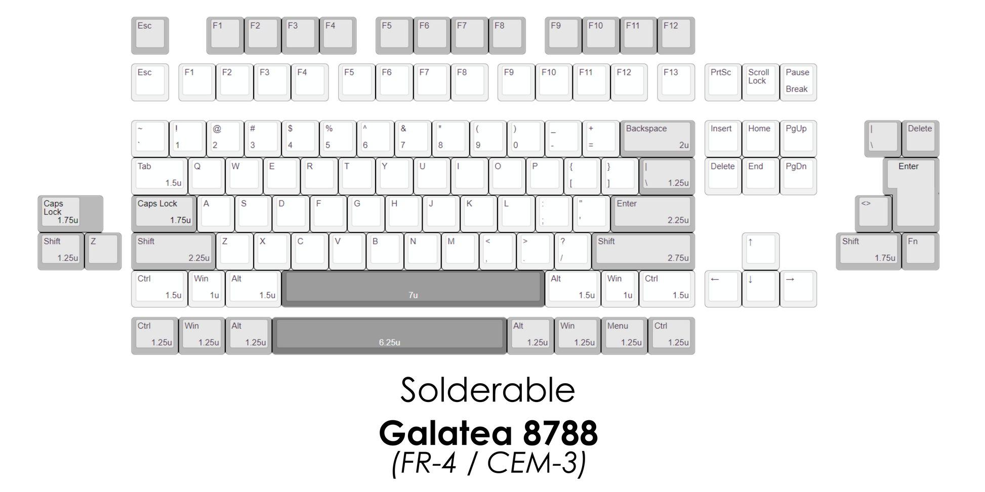 (The plate-less kit has been designed for the FAVE87C, Galatea TKL PCB in mind)